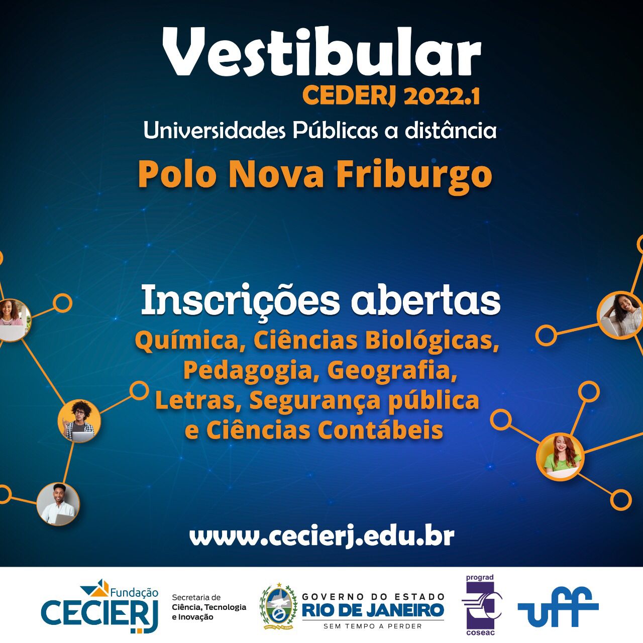 Inscrição ampla concorrência: até 9 de novembro de 2021 pelo site https://www.cecierj.edu.br/consorcio-cederj/vestibular/2022-1/