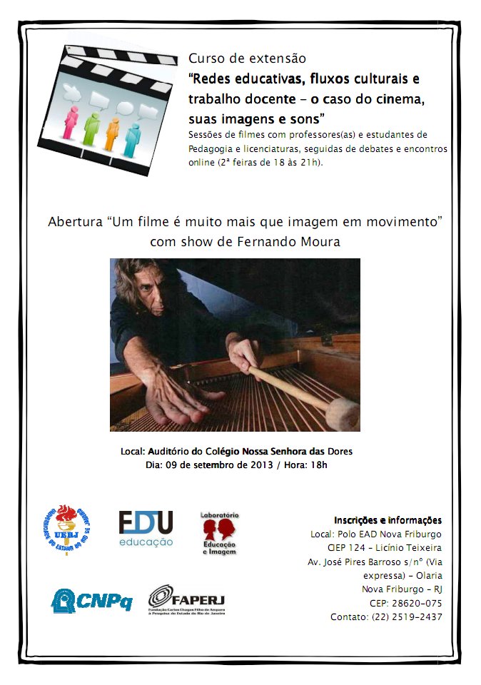 O curso terá início no dia 9 de setembro, às 18 horas, no auditório do Colégio Nossa Senhora das Dores, em evento que contará com as participações da professora Nilda Alves (UERJ) e do músico Fernando Moura.