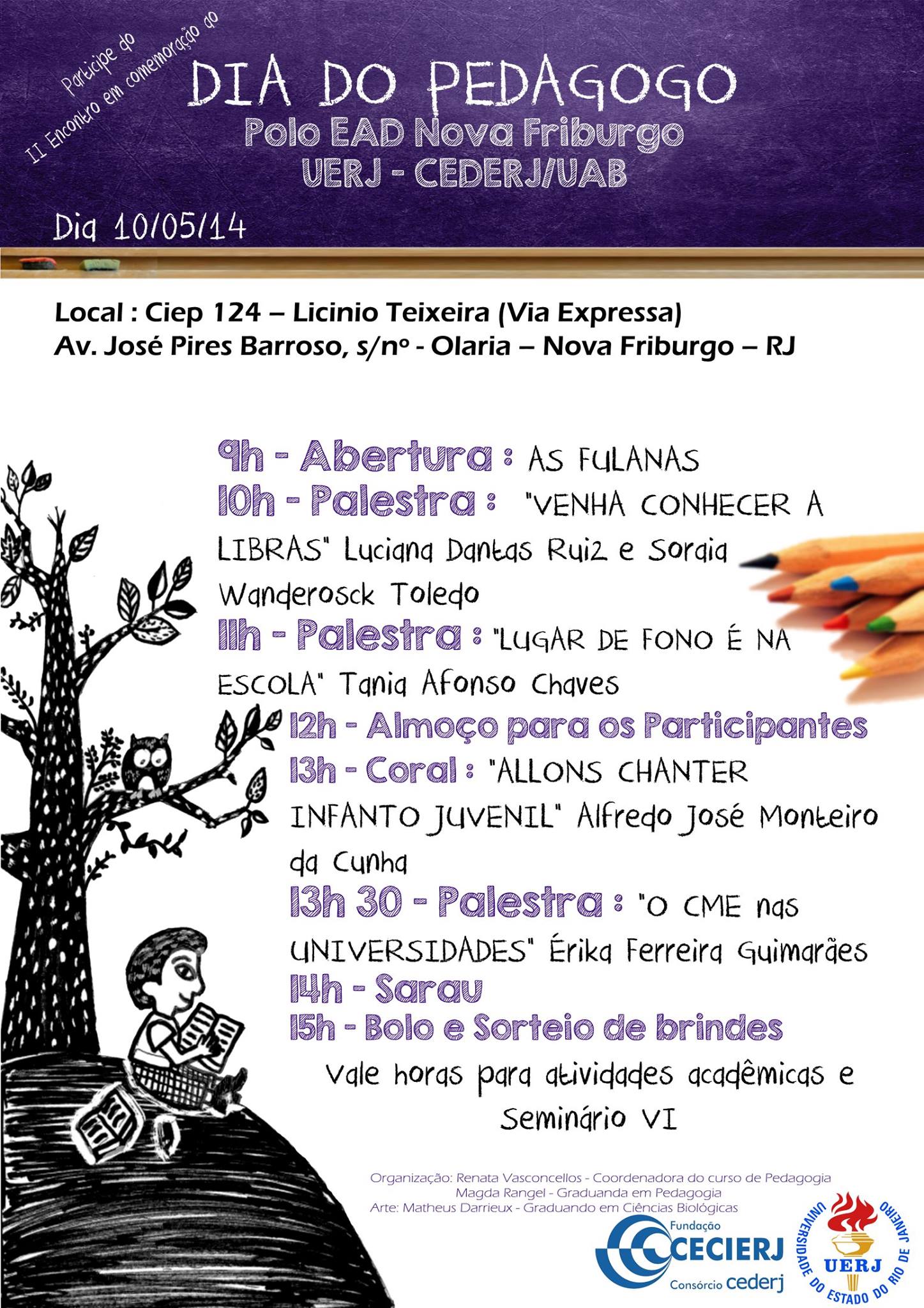 No dia 10 de maio de 2014, o Polo EAD de Nova Friburgo realizará seu 2º evento em comemoração ao Dia do Pedagogo!