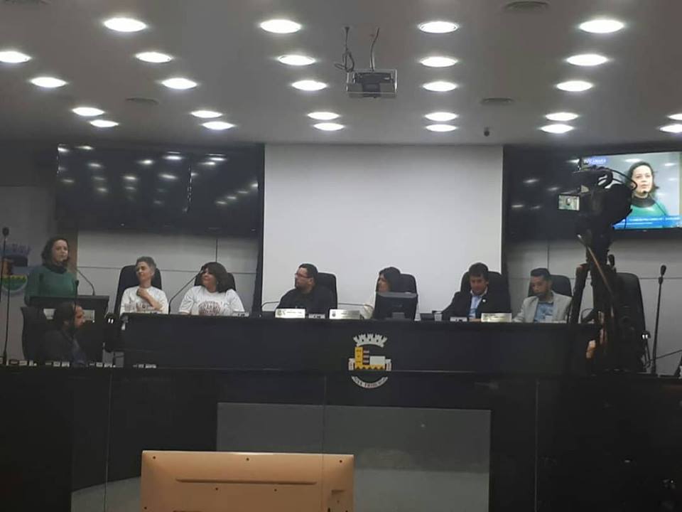 Imagem Anterior Próxima imagem aluna 2 Foto 5: Aluna Tatiana Araújo dando seu discurso. Créditos: Facebook da aluna Tatiana Araújo.