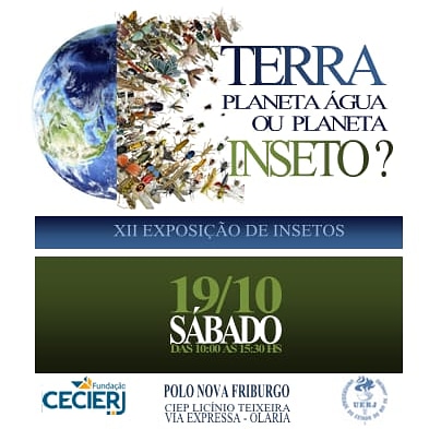 No próximo sábado, dia 19 de outubro de 2019, estará acontecendo no polo CEDERJ de Nova Friburgo, a XII exposição de insetos.