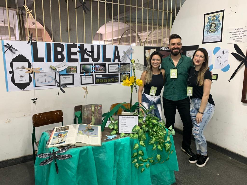 Foto 2: Alunas Clarisse Toledo, Emily Martins e Michele Ramos ficaram responsáveis pela exposição dos vagalumes. Crédito: Carolina Maciel Mattos.Foto 3: Alunas Lívia e Sabrina Fagundes apresentando sobre as abelhas. Créditos: Carolina Maciel Mattos.Foto 4: Alunos Karine Oliveira, Juliana Rosa e Renan Regly, expondo sobre as libélulas. Créditos: Carolina Maciel Mattos.