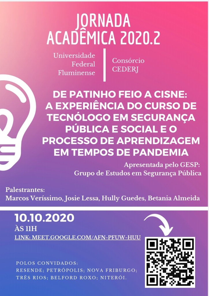 JORNADA ACADÊMICA 2020.2 – CURSO DE SEGURANÇA PÚBLICA Publicado porpolofriburgo7 de outubro de 2020Publicado emAtividades Acadêmicas, Convite, Eventos, Segurança pública, UFF Não deixe de participar! Relacionado