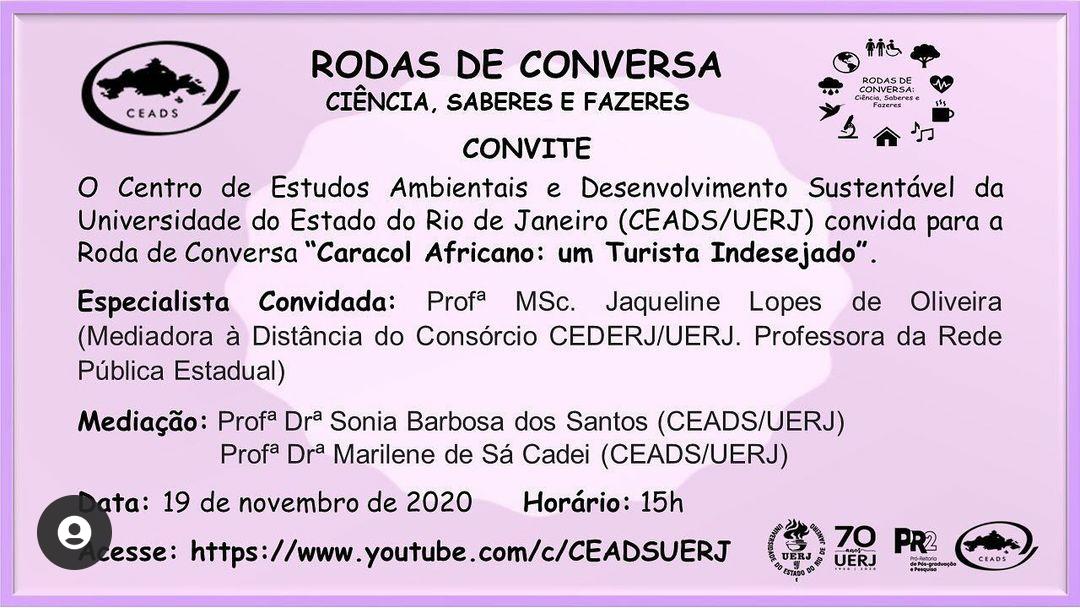 RODAS DE CONVERSA – CEADS/UERJ Publicado porpolofriburgo17 de novembro de 2020Publicado emAtividades Acadêmicas, Biologia, Convite, UERJ www.youtube.com/ceadsuerj Relacionado