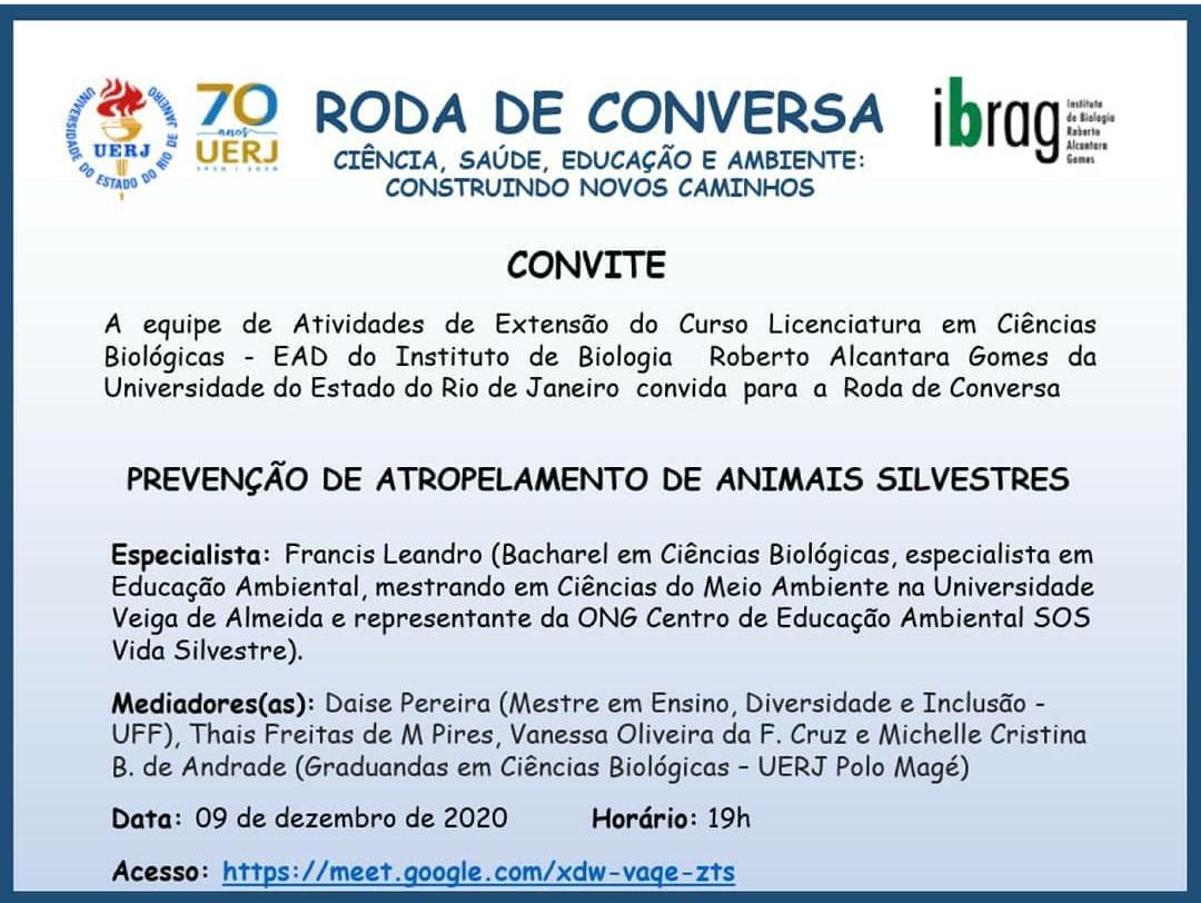 RODA DE CONVERSA – Atividades de Extensão UERJ Publicado porpolofriburgo9 de dezembro de 2020Publicado emAtividades Acadêmicas, Biologia, Convite, Extensão, UERJ Relacionado