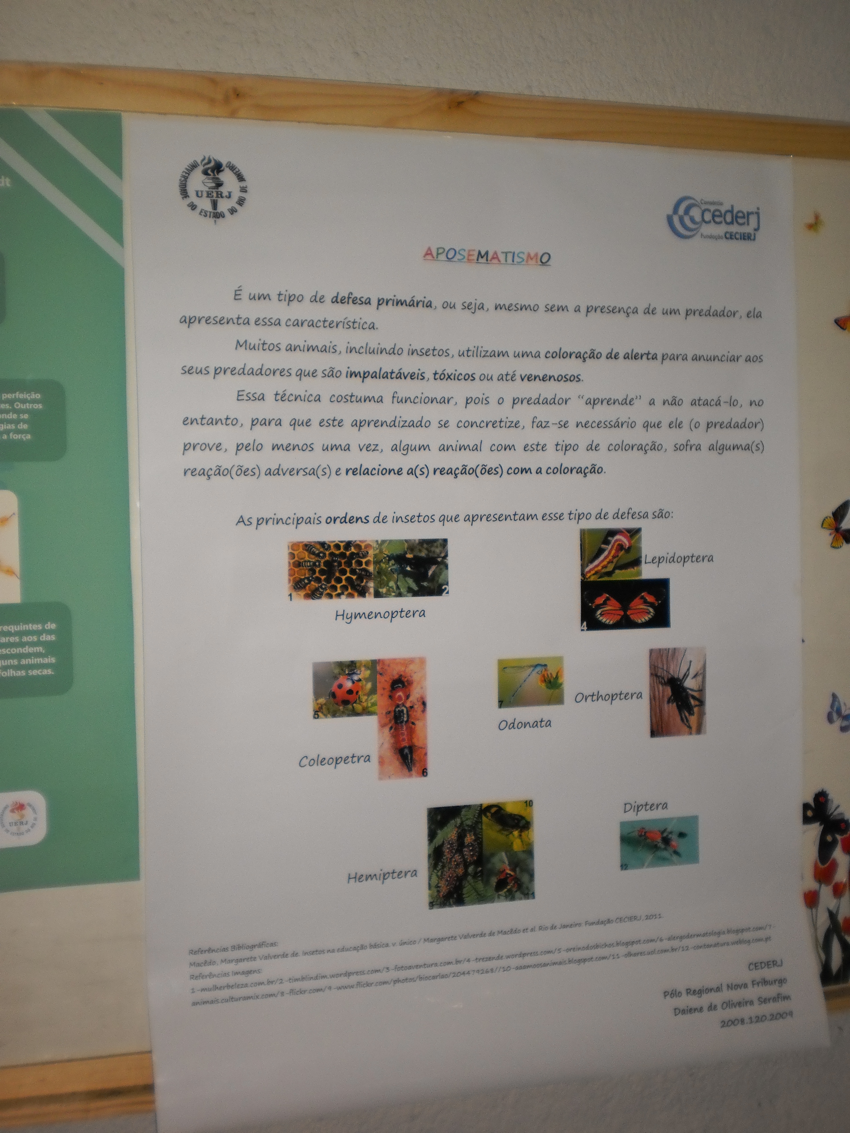 A exposição foi realizada pelos estudantes inscritos na disciplina Insetos na Educação Básica, do curso de Licenciatura em Ciências Biológicas, sob orientação da tutora Kênia Bom.