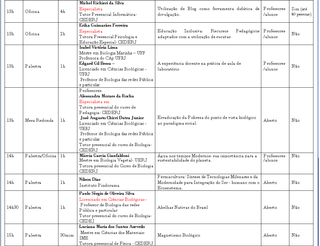 Participam do Sistema de Cotas somente os cursos de Licenciatura em Ciências Biológicas, Licenciatura em Pedagogia, Licenciatura em Geografia e Licenciatura em Química, oferecidos, pela UERJ e pela UENF. Todos os cursos terão início no primeiro período letivo de 2013, na modalidade de Educação a Distância (EAD), em regime semipresencial.